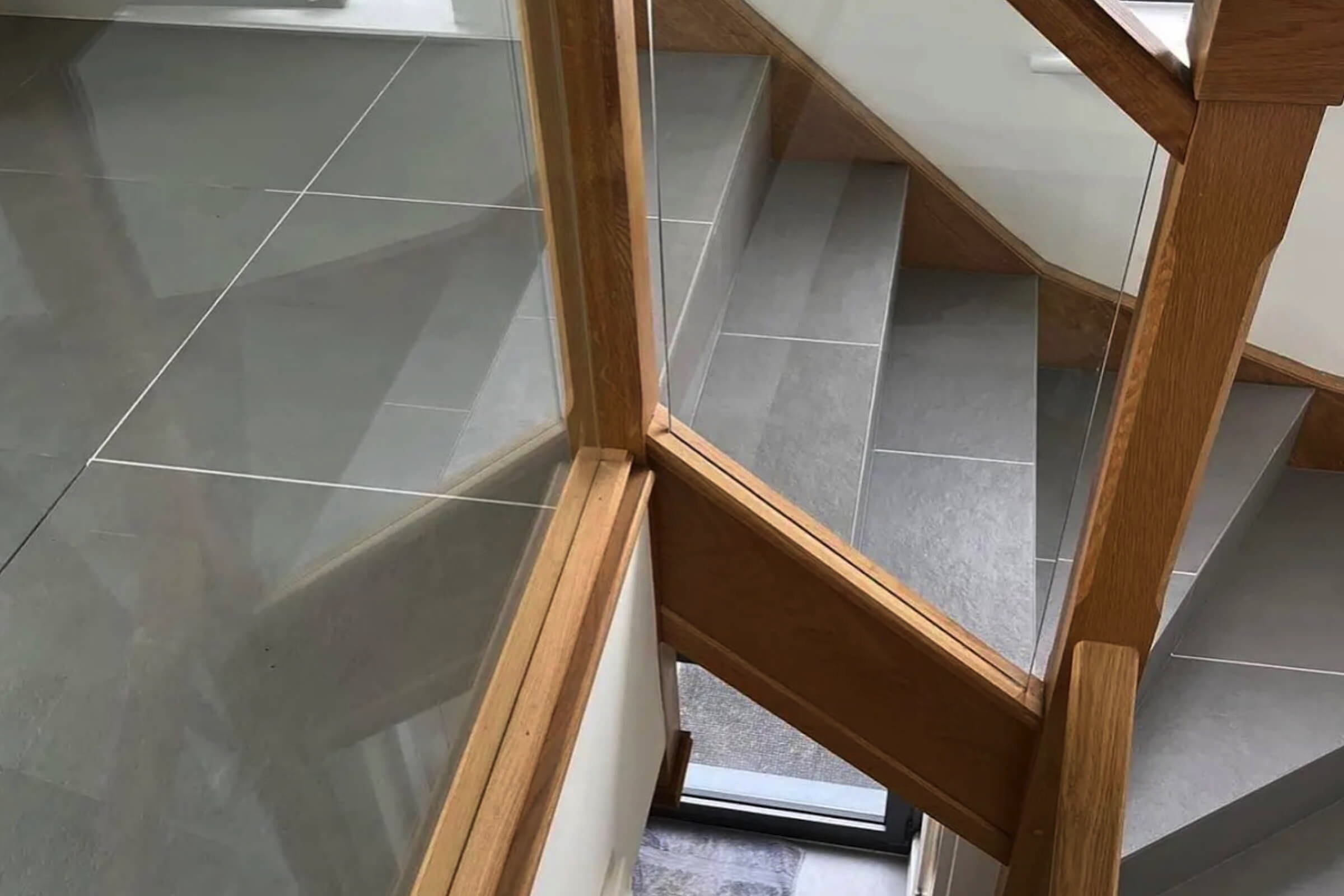The client’s brief was to seamlessly join two areas of tiled flooring, one upstairs and one down. They wished for a seamless flow throughout, giving the stairwell a light and airy feel whilst being hard wearing and practical. CJH Tiling removed all the carpet, secured the stairs to minimise deflection and then over boarded the stairs. Dural were contacted and supplied powder coated trims. The trims were custom powder coated by Dural to match the exact colour of the tiles and grout as part of their Alternative Finishes Range.