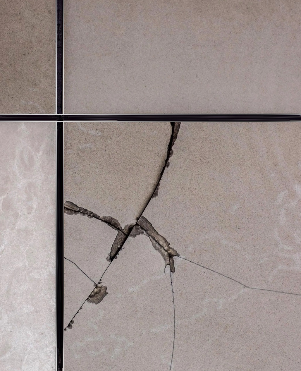 It’s worth noting that straight cracks are usually caused by vertical movement in the subfloor. Where “lightning flash” cracks appear this is normally caused by horizontal movement within the subfloor. Tiling early onto unstable surfaces such as green screeds can also cause this problem. Sometimes indicated where tiles “tented” or “popped” under compression.