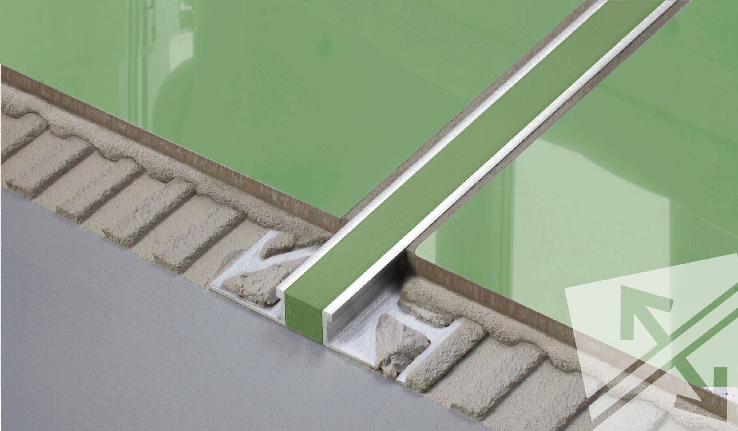 In order to determine where to place the profiles it is necessary to inspect the subfloor. Day joints in the screed or pre-existing compound joints will often be the deciding factor. Many of these existing joints are approximately 6 metres apart (British Standard guideline is a max of 10 metres) which can often cause problems with tile layouts leaving some awkward cuts. Please contact us to discuss this in more detail. Some subfloors are monolithic and have no subdivision. In these situations the Movement Joint position can be adjusted to best suit the aesthetic layout of the tiling following the 10 metres guide (see section on heated floors).