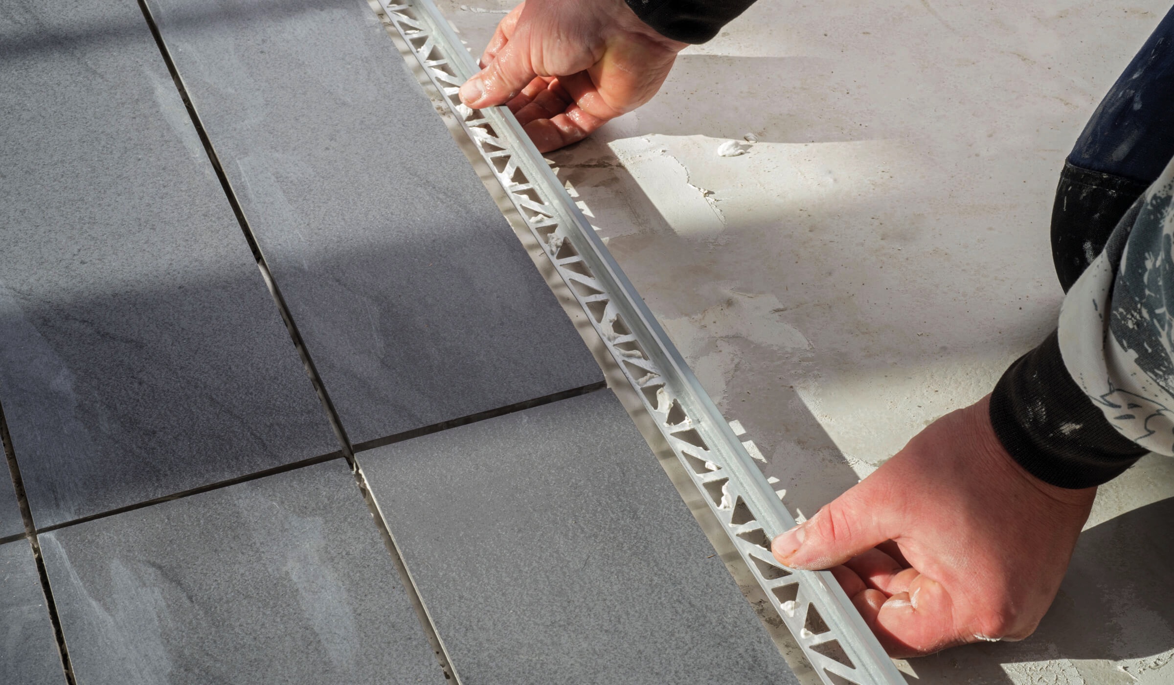 For Example: A 10mm tile plus adhesive bed gives an overall installation height of 13mm. A 10mm Movement Joint has an overall height of 11.5mm. When installed together the top edge of the profile is a perfect 1.5mm below the top surface of the tiles. This height difference prevents any impact damage.